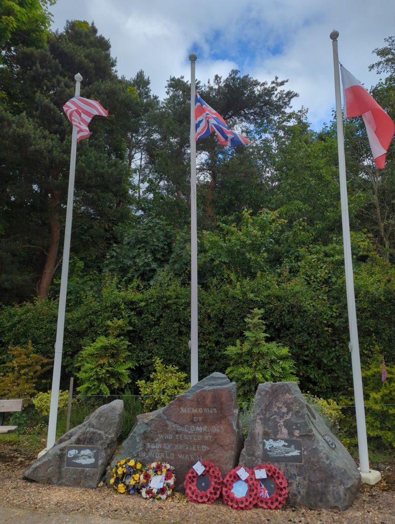 Terwijl ik dit schrijf zit ik op het bankje bij het monument met de Britse, de Poolse en de Amerikaanse vlag.