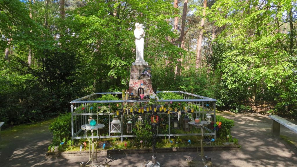 Toevallig kwam ik onderweg langs een bedevaartsoord Drieboomkensberg met Onze-Lieve-Vrouwe ter Koorts. Een beetje kitsch met al die plastic bloemen, maar de gelovigen nemen het hier zeer serieus. Deze plek is ontstaan als dank voor een verhoring van een gebed. Een Engelse officier had namelijk gebeden om hem de gruwelijke Spaanse Successieoorlog (1701-1713) te laten overleven.