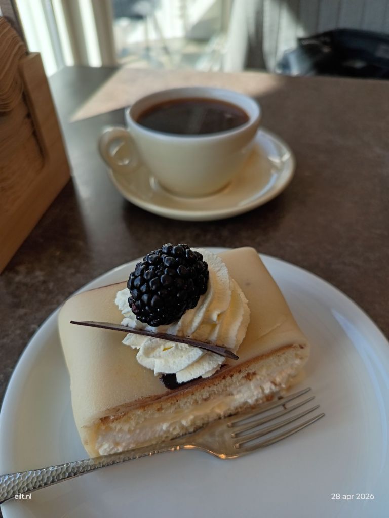 Daarna een bakker opgezocht voor een koffie plus. Deze heet iets met Othello, dat is een personage en drama van Shakespeare. Aan het eind van dat verhaal gaat iedereen dood. Vreemde naam voor een gebakje 🍰